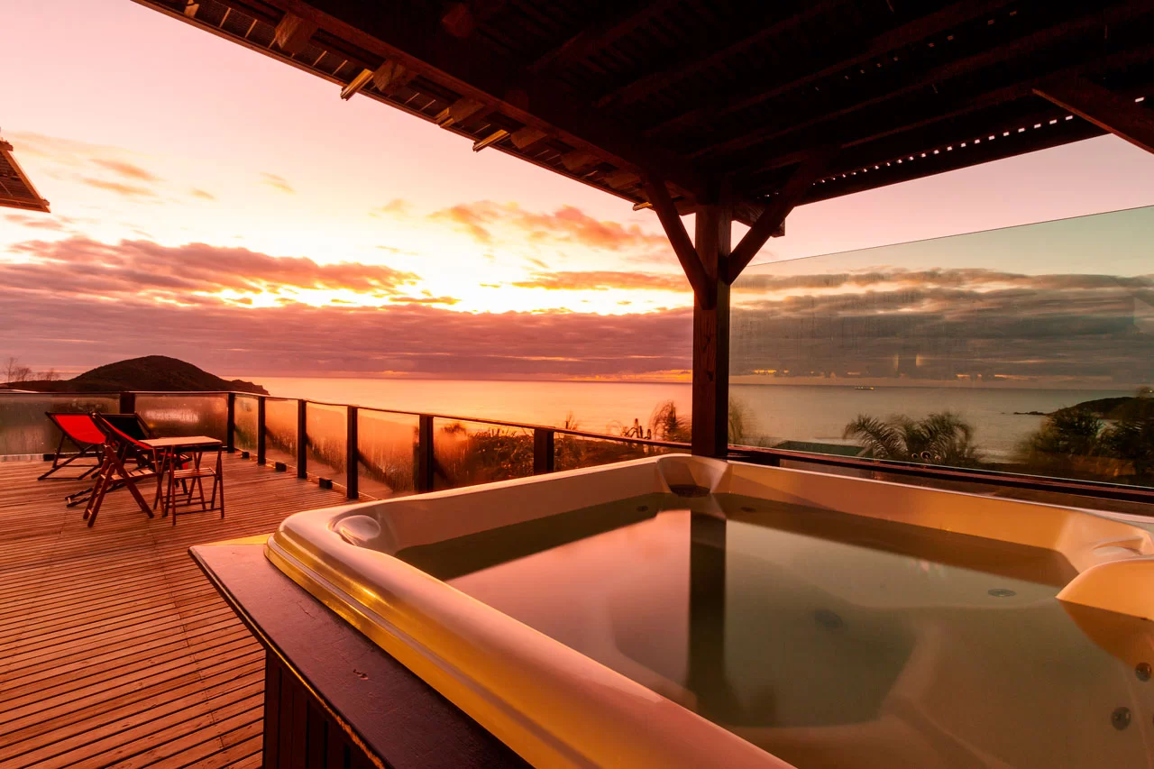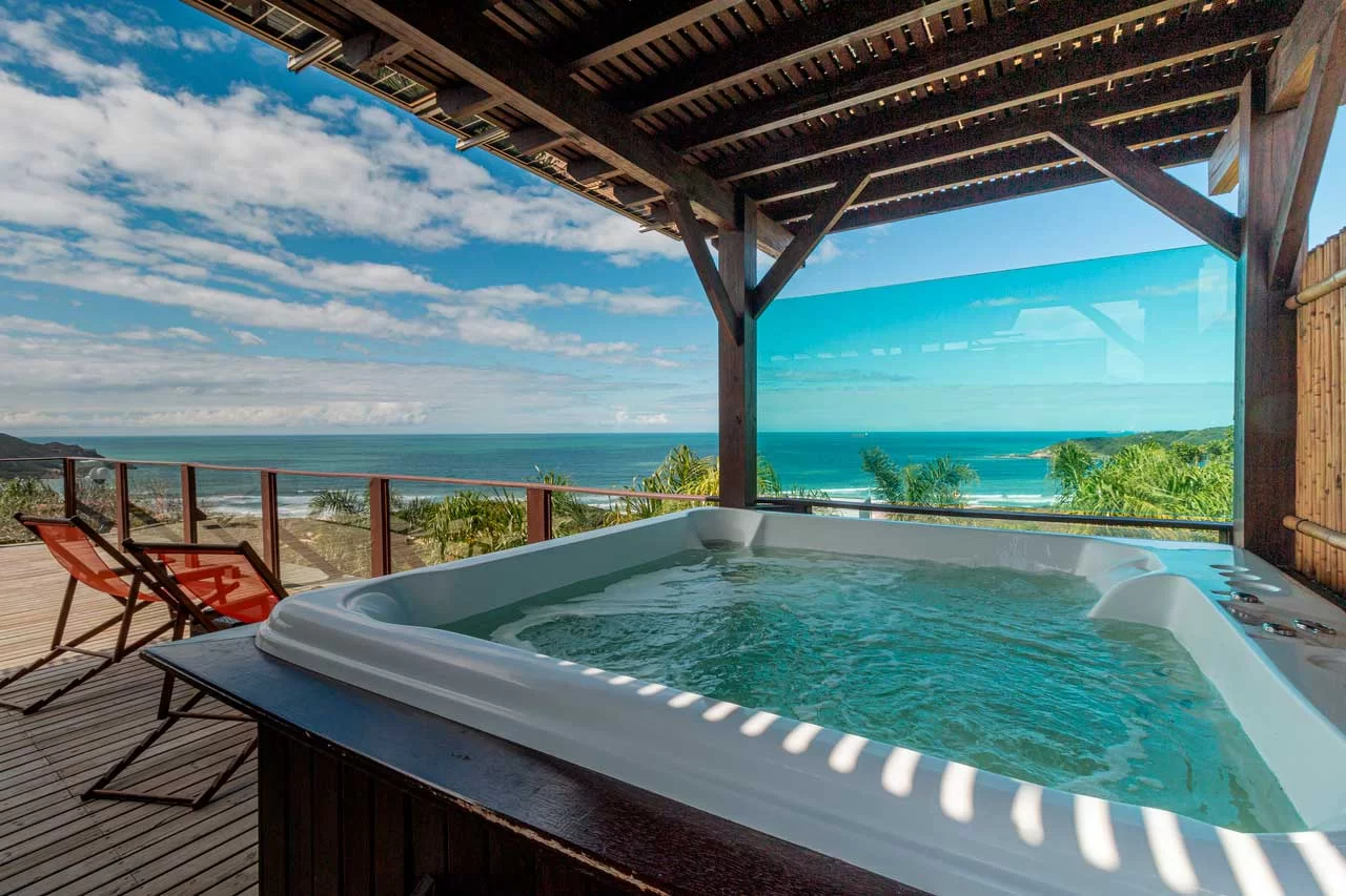 A Suíte Mirador não possui banheira de hidromassagem, mas você poderá usufruir de nossa incrível SPA com vista para o mar localizada no deck Oceano. (SPA de uso comum). Caso faça questão de uma suíte com banheira de hidromassagem para 02 pessoas, indicamos nossas Suítes Luxo e Suíte Master.